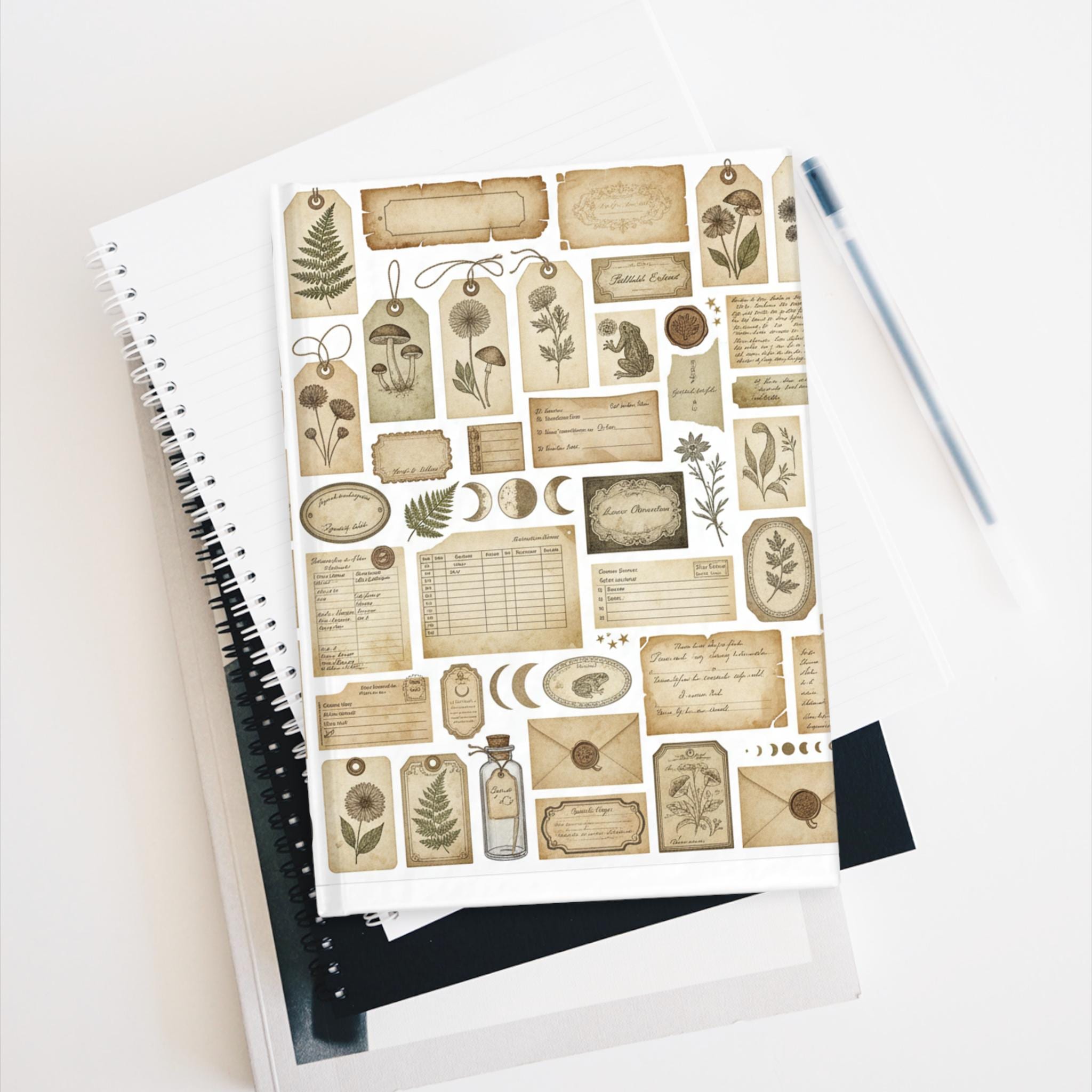 - Matte laminated full-wrap cover with vintage ephemera collage