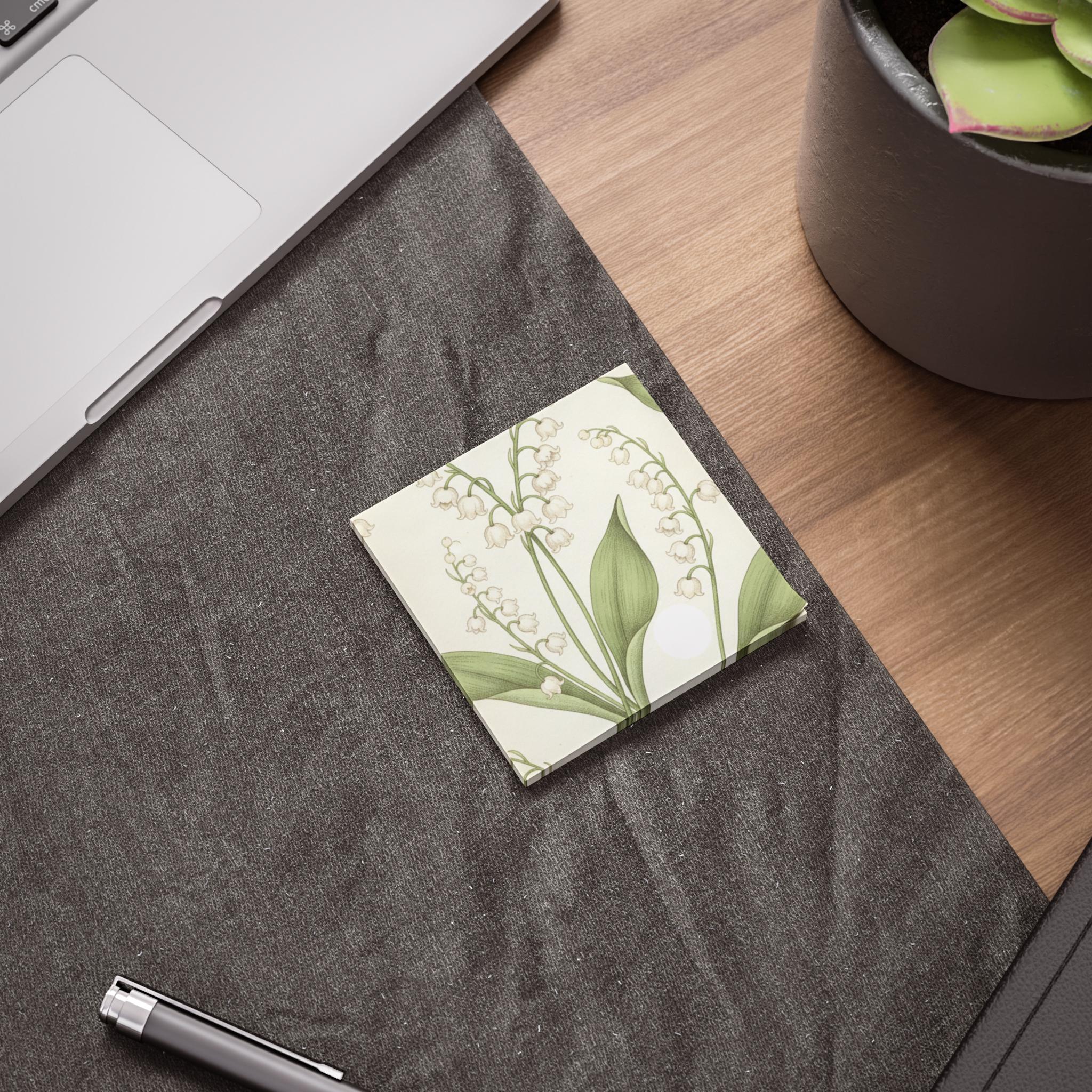 Soft, hand-drawn sprigs of lily-of-the-valley drift across creamy paper — quiet, botanical, and whispering vintage charm. These Post-it note pads sit on your desk like little reminders from a cottage garden: leave a tender note, mark a page, or tuck a small list into a planner. The subtle green leaves and bell-shaped blooms bring a calm, natural touch to everyday tasks. Each sheet is printed on smooth white paper with a single-sided design so your notes stay readable and beautifully framed. They come with the recognizable branded backing and reliable 3M adhesive, so the pads stay put whether you press one to your journal, a laptop, or a kitchen cupboard. Assembled in the USA, these pads add a delicate, botanical accent to note-taking routines and slow, intentional workflows.